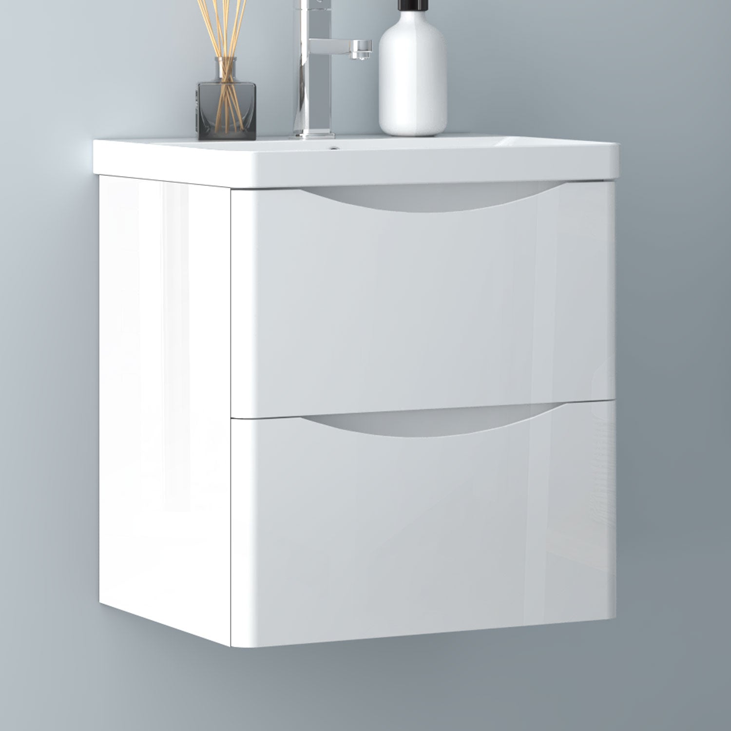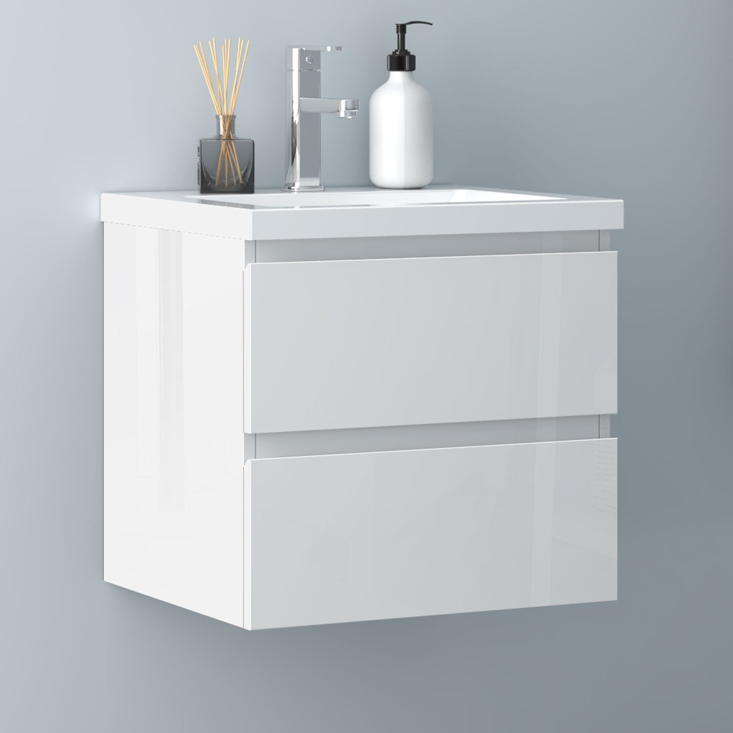 Wall Hung Bathroom Vanity Unit with Basin Sink Cabinet Gloss White