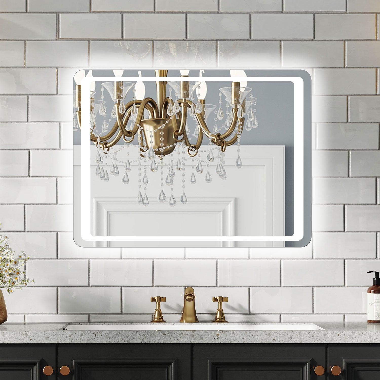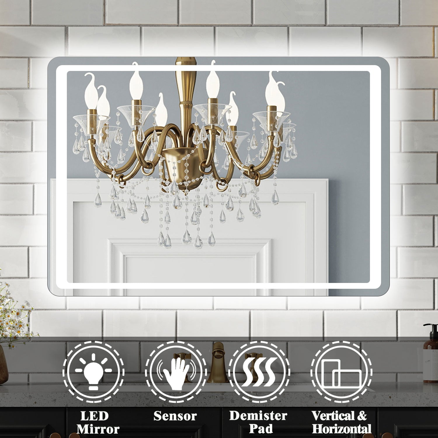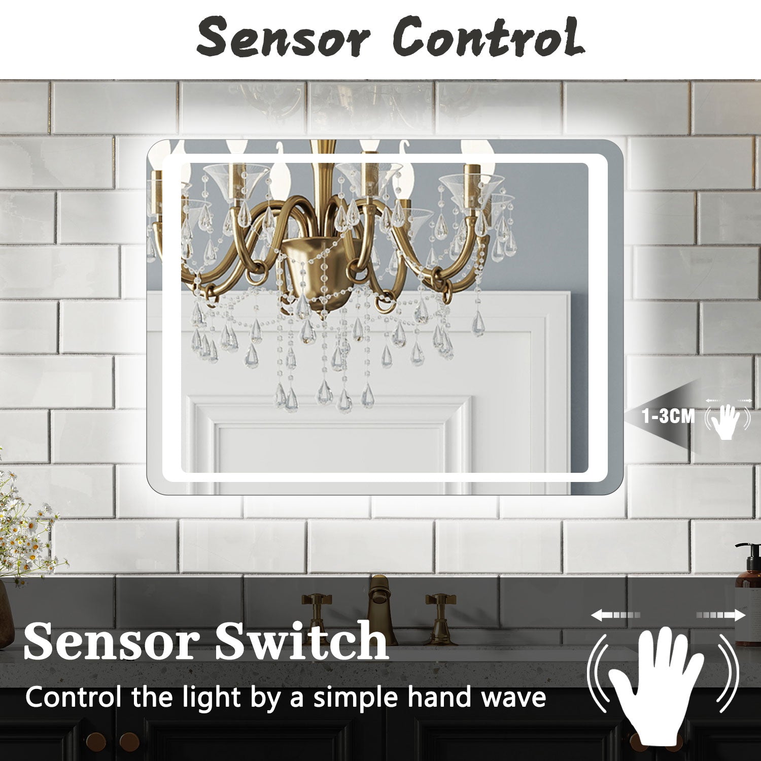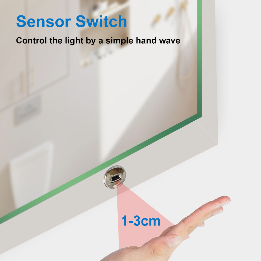 Aidal--Bathroom Mirror with Dimmable LED, Anti-fog, Hand sweep switch, Rectangle, Waterproof, Explosion-proof, Wall mounted