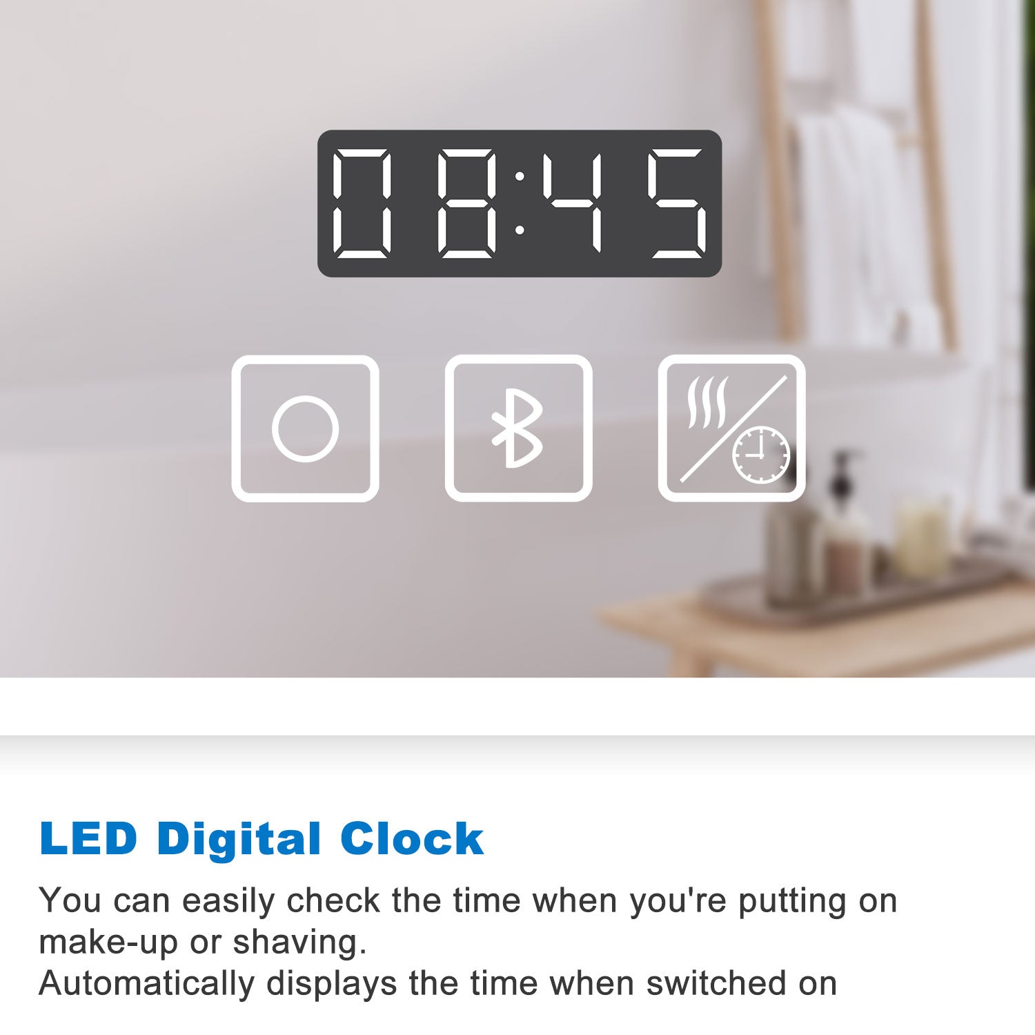 LED Bathroom Mirror with Bluetooth Dimmable Anti fog Magnifier Clock