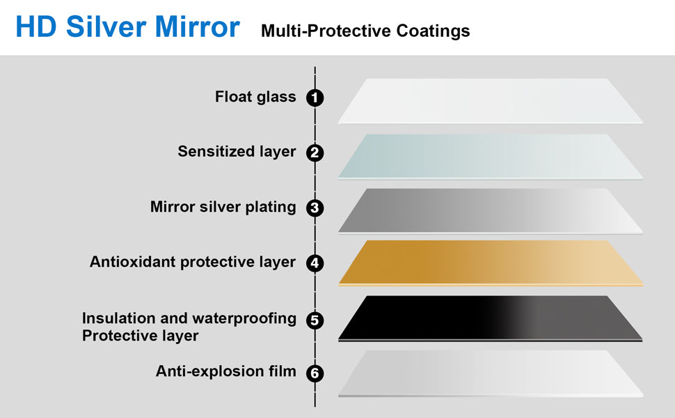 - With Explosion-proof film: Compared with other mirrors, this mirror won't splash out fragments even if it breaks, so you can use it with confidence.